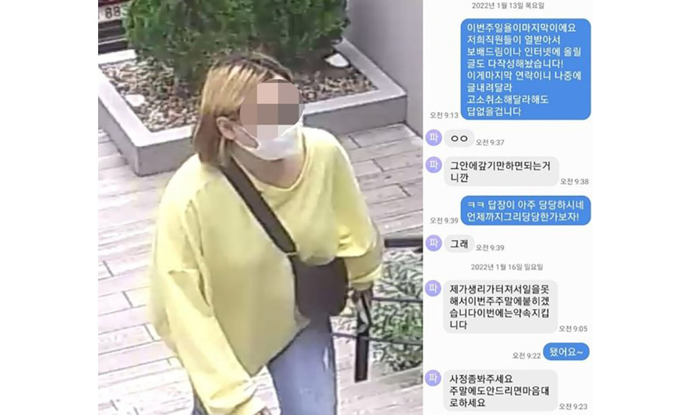 끝으로 A씨는 지난달 13일과 16일에 손님과 나눈 메시지도 공개하면서 "이 손님 아시는 분은 제보 부탁한다. 아는 게 이름과 전화번호밖에 없어서 내용증명도 못 보내고 있다"고 덧붙였다.