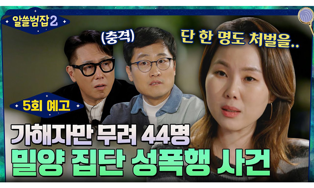 2004년 밀양 성폭행 사건은 고등학생 가해자 44명이 약 1년 동안 여자 중학생을 집단 성폭행하고 신고하지 못하도록 피해 상황을 동영상 촬영해 협박한 사건. 이날 방송에서 서혜진 변호사는 “놀랍게도 가해자 44명 중에 형사처벌을 받은 가해자는 단 한 명도 없었다”고 말해 충격을 안겼다.
