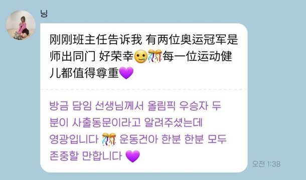 닝닝의 메시지는 온라인 커뮤니티와 SNS에 확산하며 논란을 불렀다. 혼성계주에서 중국이 금메달을 따내는 과정을 놓고 판정 논란이 불거졌기 때문이다.