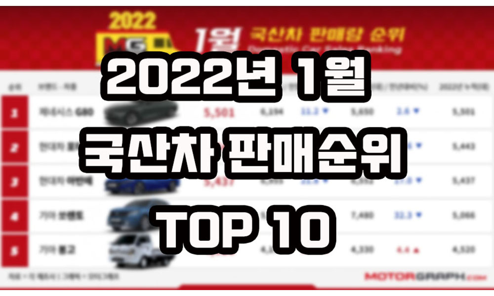 2022년 1월 국산차 판매량 순위 TOP 10