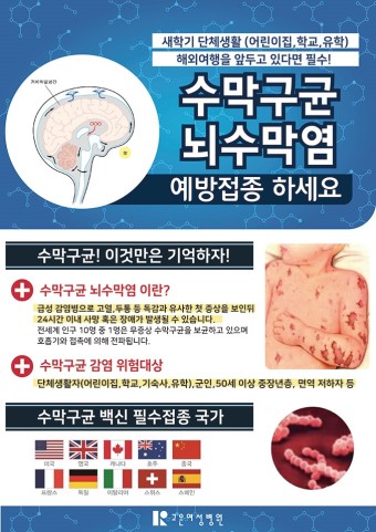 수막구균 감염 위험군은 1세 이하 영아와 16~23세 청소년, 군인, 대학 기숙사생, 수막구균 유행지역 여행자 등이라고 합니다.