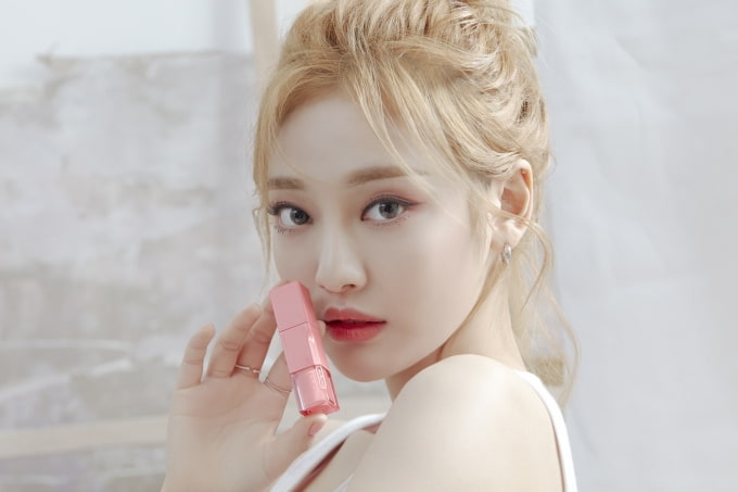 지젤은 피치 컬러의 립 메이크업을 하고, 닝닝은 맑은 레드와 플럼이 믹스된 컬러를 사용해 맑고 여리여리한 봄 느낌을 더했습니다.