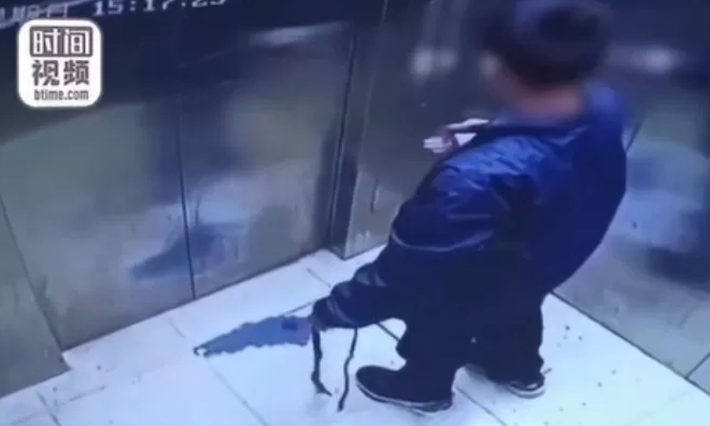 문제는 이 소년이 강아지와 함께 엘리베이터에 탑승 하였다가 무슨 이유에서인지 강아지를 엘레베이터 밖으로 내보낸 뒤 엘리베이터 문을 닫아버렸습니다.