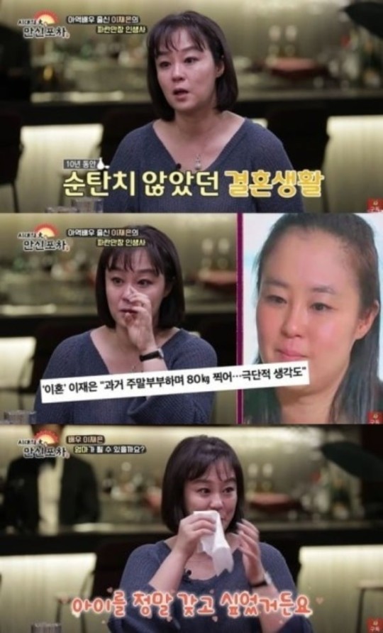 이를 이해해주지 않는 남편과의 불화와 아이가 생기지 않아 생기는 스트레스로 이재은은 결혼 3~4년차에 심한 우울증이 와 정신과 상담을 받고 약을 먹으며 치료를 받았다고 합니다.