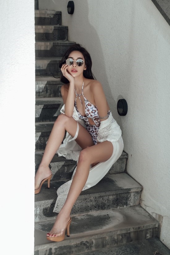 가는 허리와 뛰어난 각선미를 지녀 모델 중에서도 비키니와 수영복을 완벽하게 소화하는 모델로 꼽힙니다.
