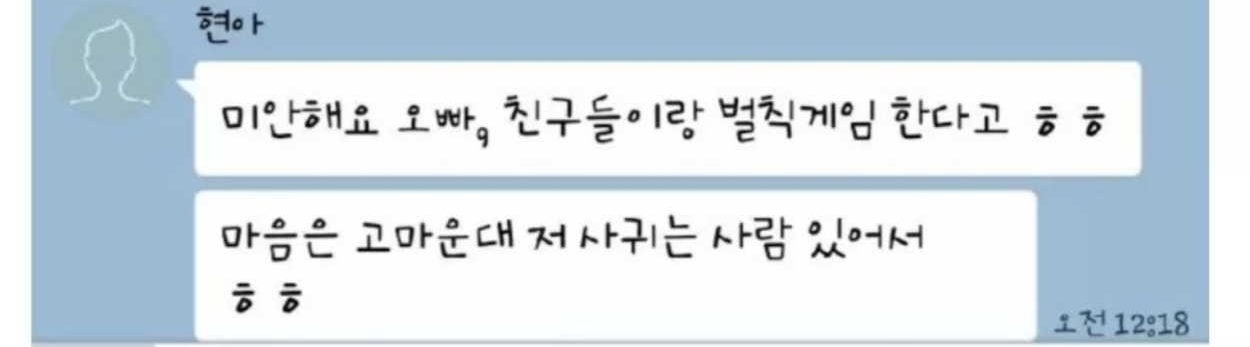늦은 밤 썸타던 여자 후배에게 카톡이 왔습니다.