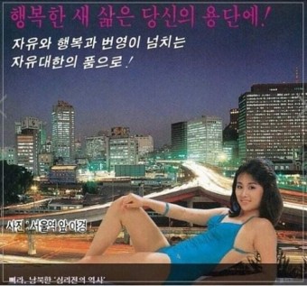 반대로 우리 나라가 북한으로 보낸 삐라에도 아름다움을 뽐내는 일반 여성들은 물론 당대를 대표하던 여성 연예인의 사진이 사용되었다고 하네요.