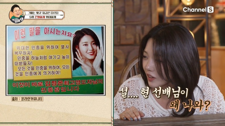 김구라는 옛날 삐라는 문구 자체도 살벌했는데 요즘은 세련되게 바뀌었다며 설현의 얼굴이 인쇄된 삐라를 공개해 놀라움을 안겼습니다.