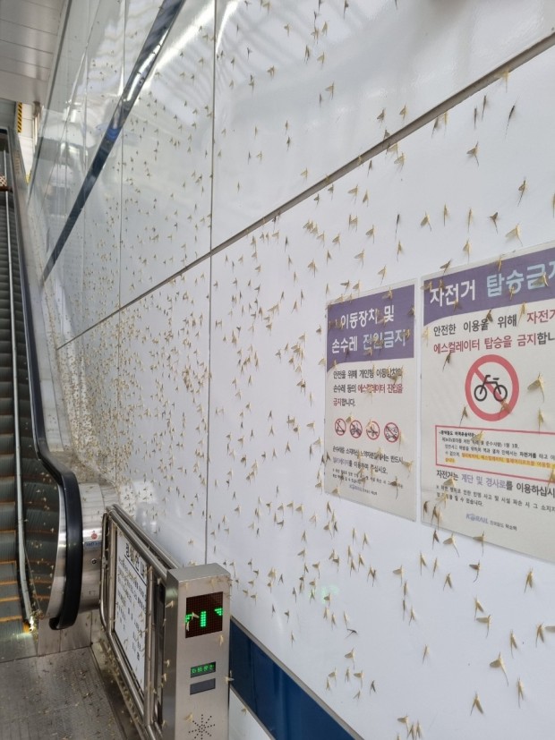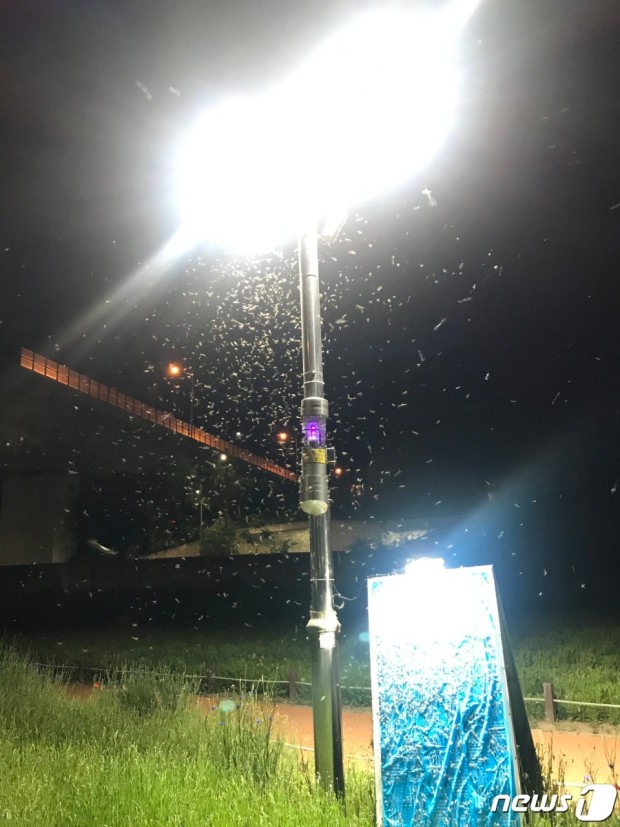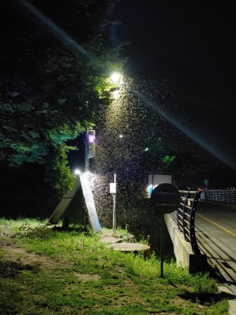 5월부터 9월까지 활동을 하는 이 녀석들은 불빛을 보고 몰려든다고 하며 인근 주민들은 개체 수가 너무 많아 마스크 없이 밤 길을 걷다보면 얼굴에 달려드는 것은 물론 입속으로 까지 날아든다고 하네요.