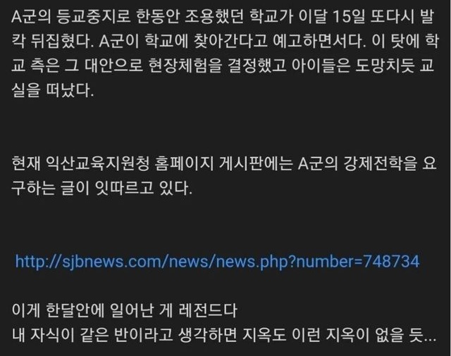 이 같은 일이 알려지자 강제전학은 폭탄 돌리기 일 뿐이라며 제대로 된 해결책이 될 수 없다며 논란이 일고 있습니다.