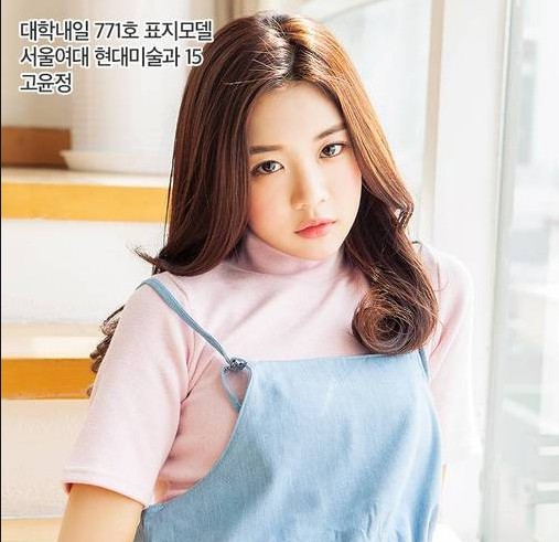 키 161cm이며 데뷔 전부터 뛰어난 미모를 자랑하던 고윤정은 대학내일 771호의 표지모델과 학교 홍보 모델을 한 이력이 있습니다.