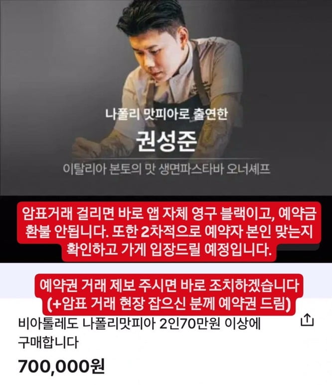 권성준 셰프가 직접 인스타그램에 암표 거래에 대한 경고 스토리를 업로드했습니다.