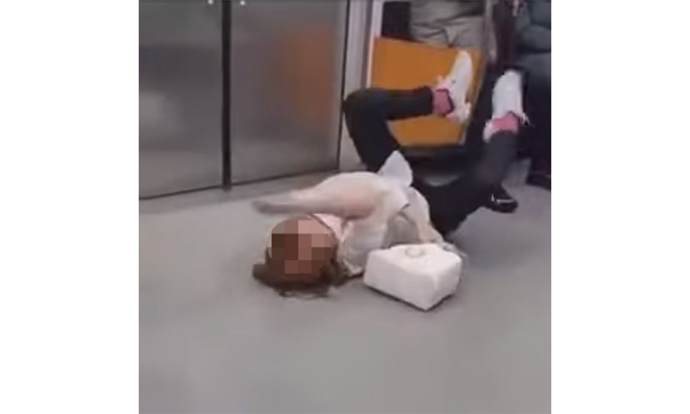 그러다 열차 칸을 넘어오는 승객에게 "저 너무 귀엽죠"라고 물으며 자리를 옮긴다. 지하철 내 승객들은 당혹스러움을 감추지 못했다.