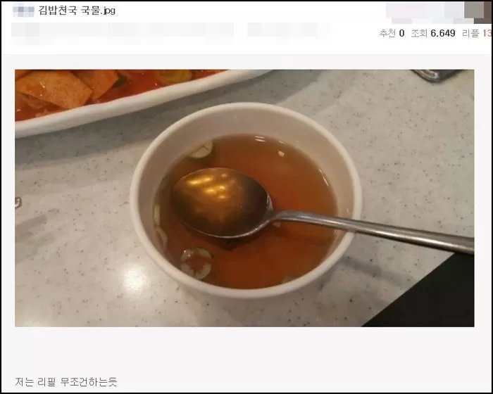 김밥천국에서 무조건 2번 리필하는 이 '국물'의 정체는?