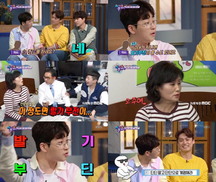 딘딘에겐 꾸준히 발기부전 밈이 붙어 다니는데, 딘딘은 마리텔에 출연하여 전문의과 금연상담 중 딘딘의 몸상태를 진단한 전문의가 '이 상태라면(50대에는) 발기부전이 와도 이상하지 않다'라고 진단하였고 1박 2일에서도 생식기 드립으로 쐐기를 박아버려 발기부전 드립이 엄청 흥하게 되었다.